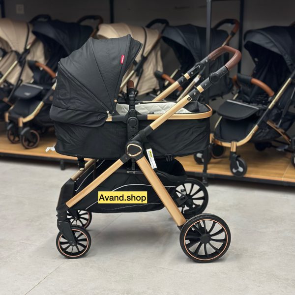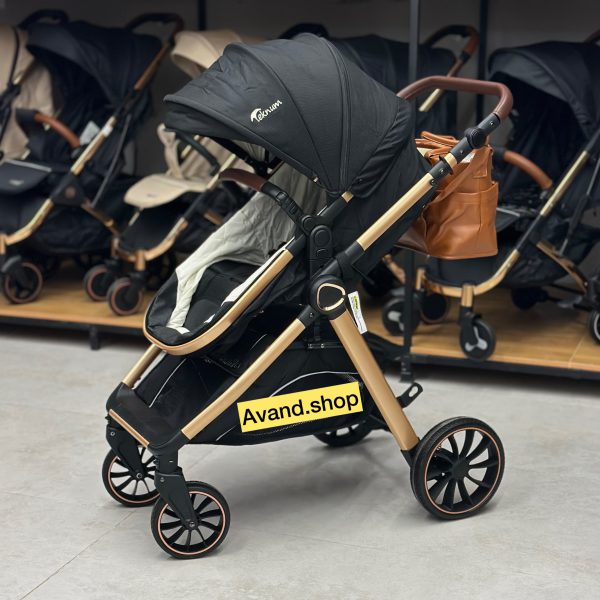 قاب آلومینیومی زیبا و سبک سیستم تاشو سریع و آسان قفل خودکار اتوماتیک قابلیت پشت و رو به مادر شدن سیستم مهاربندی 5 نقطه ای چرخش 360 درجه چرخهای جلو با مکانیسم قفل