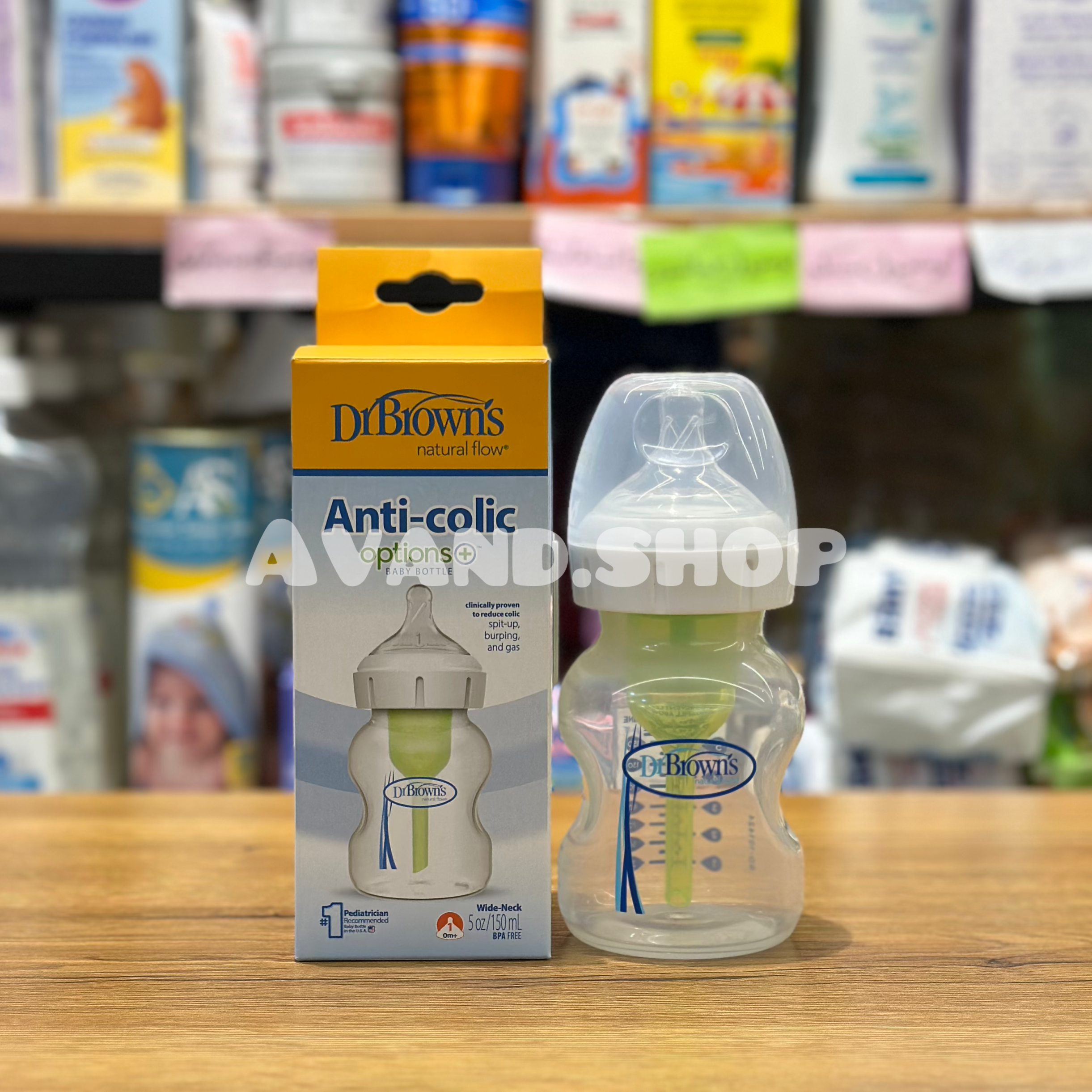 شیر خوری 150 میلی لیتری دکتر براونز Dr.Brown شیشه شیر های مدل آپشن پلاس دکتر براونز از جدیدترین تولیدات این برند مطرح آمریکایی است.این شیشه شیر دارای گنجایش 150 میلی لیتر و دارای سیستم ضد نفخ است و با استفاده از لوله ای که داخل شیشه شیر طراحی شده از کولیک کودک جلوگیری می کند. ویژگی شیشه شیر های آپشن پلاس دکتر براونز این است که هم می توانید شیشه شیر را با نی سبز رنگ داخل آن و هم بدون نی استفاده کرد. نی سبز رنگی که داخل شیشه شیر تعبیه شده است باعث می شود که هیچگونه جریان هوایی وارد معده نوزاد نشود و از دل درد و نفخ نوزاد جلوگیری می کند.