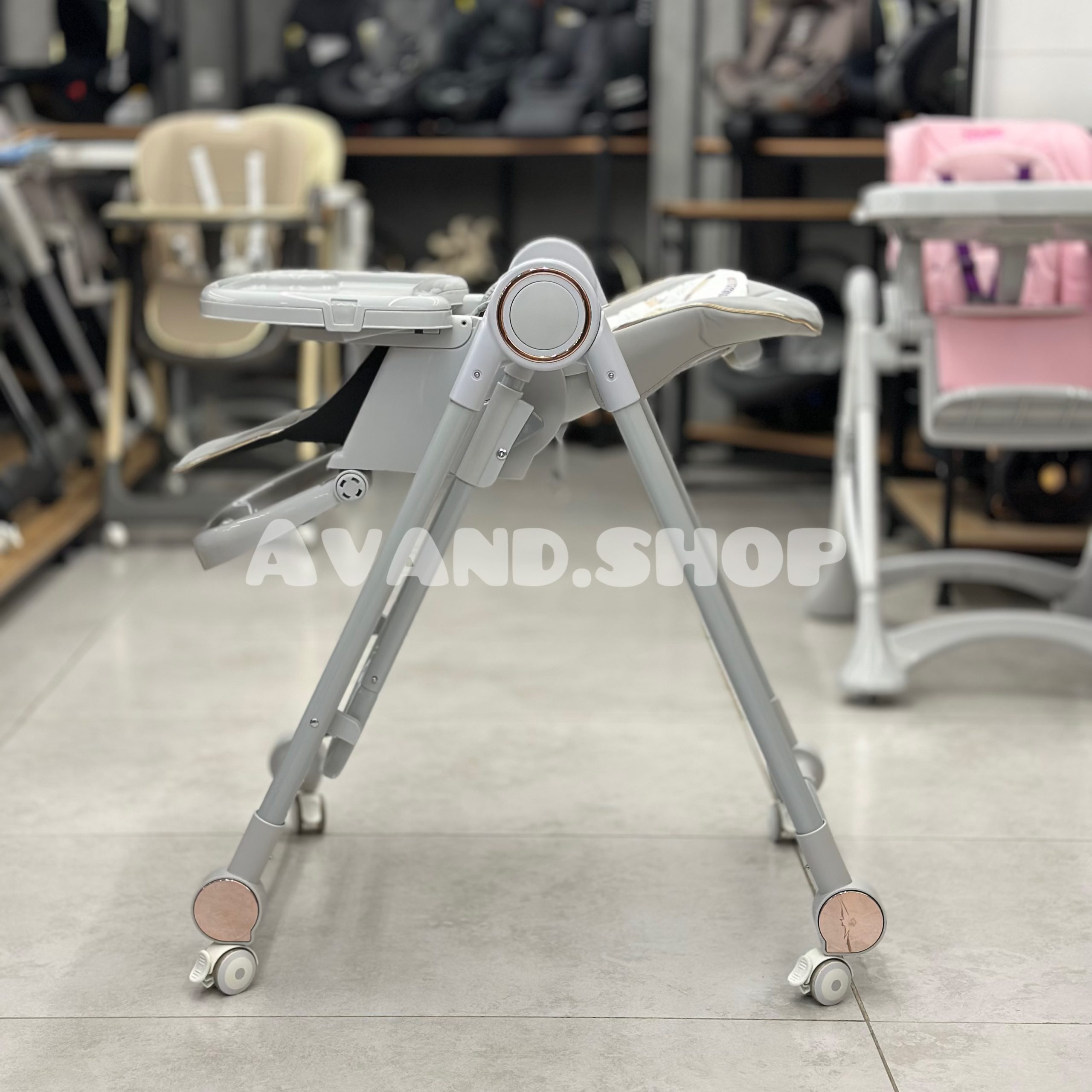 در ضمن برای جابه جایی راحت این صندلی غذا چهار چرخ در زیر این محصول تعبیه شده است