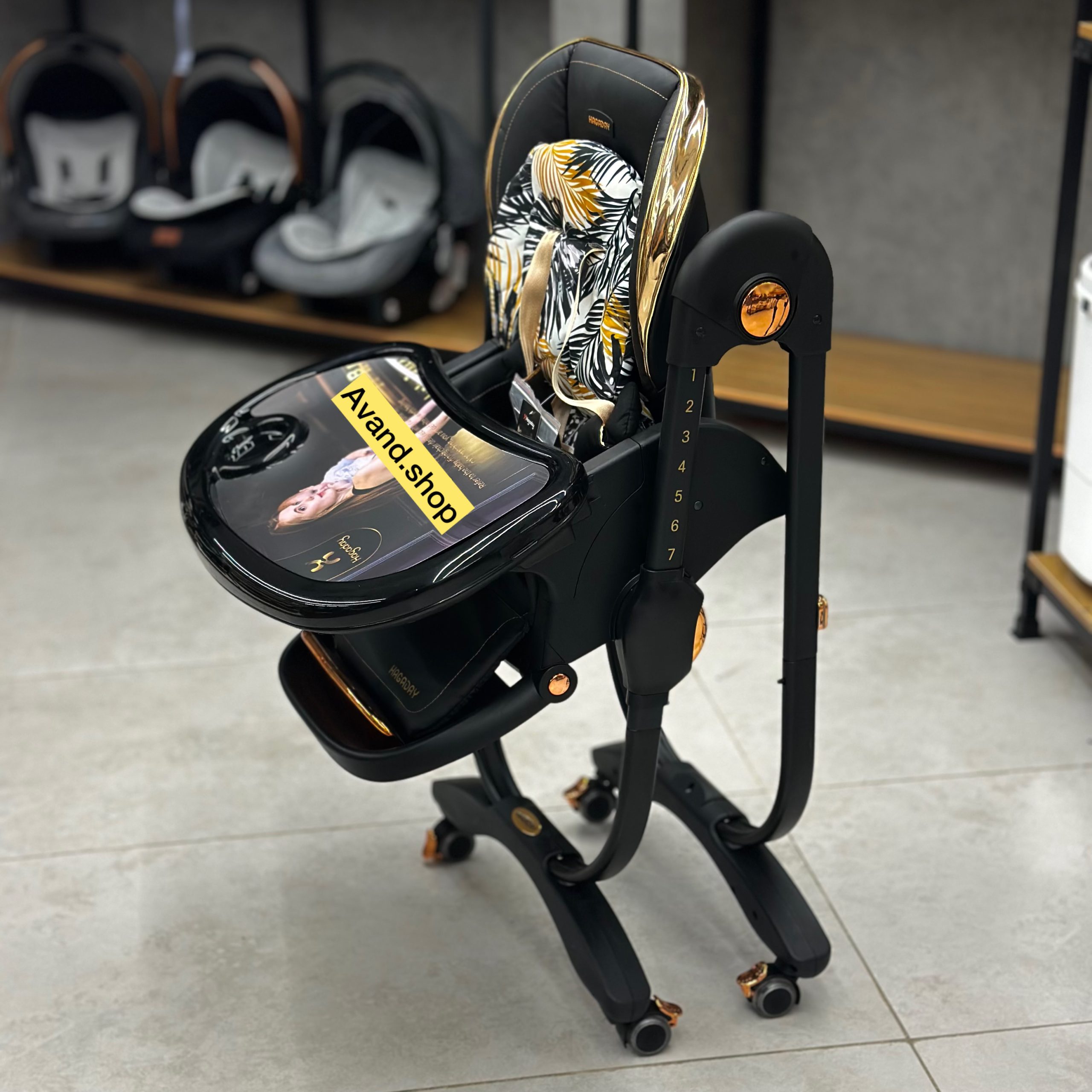 این صندلی غذای کودک دارای تنظیم ارتفاع پایه و تکیه گاه پشتی است