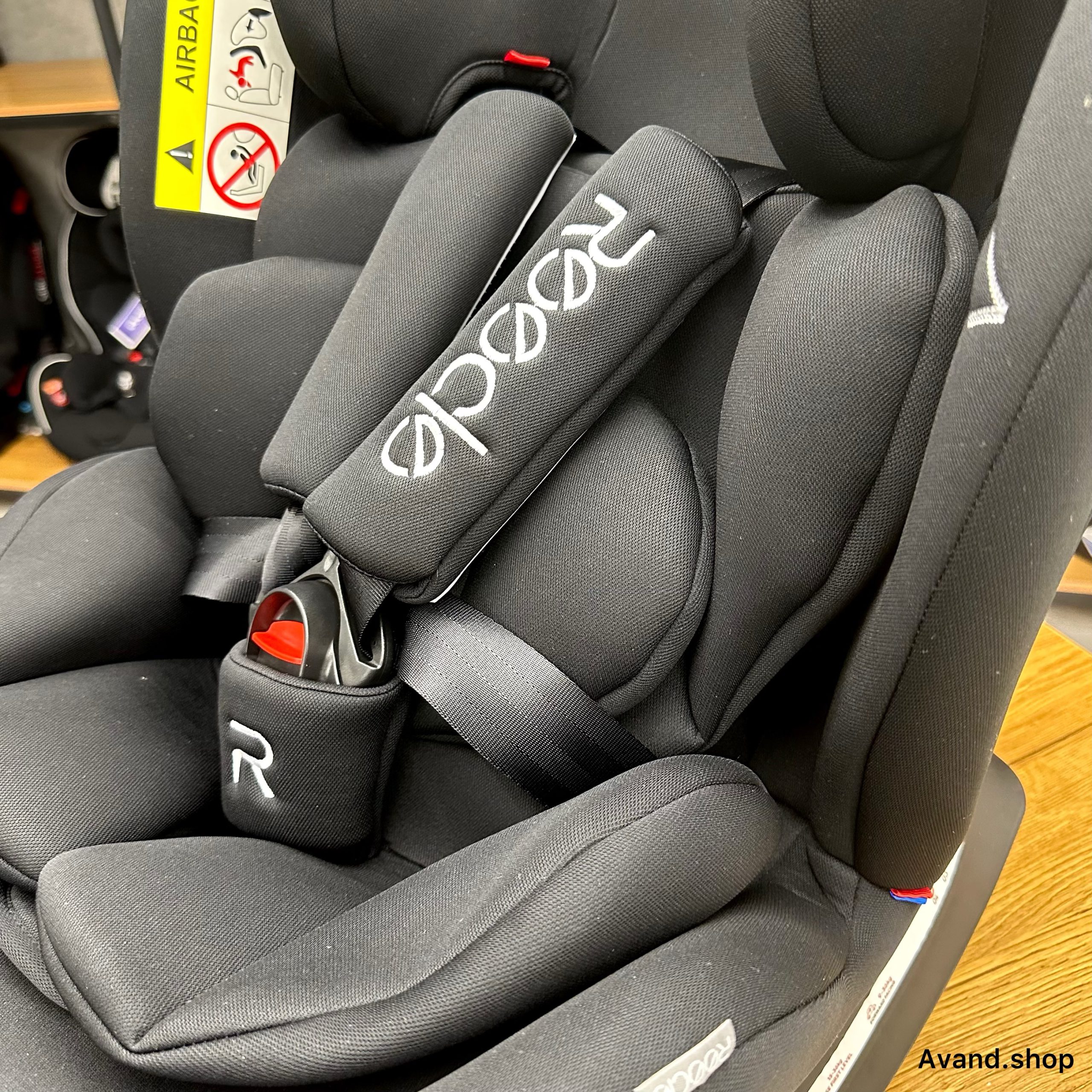 – کمربند ایمنی 5 نقطهای : این سیستم با پوشش ضد لغزش، شوکها را جذب کرده و پدهای نرم برای راحتی کودک طراحی شده است.