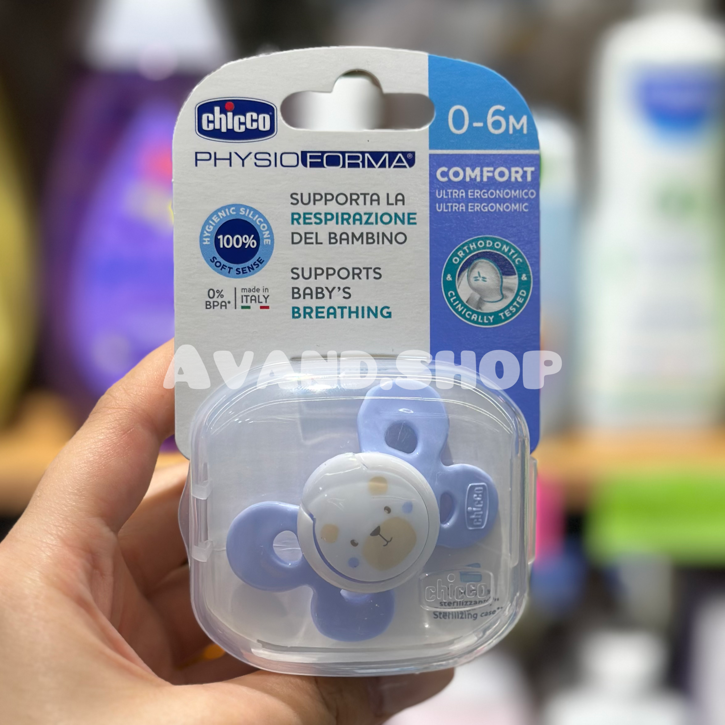 پستانک چیکو یک پستانک سبک وزن و ارتودنسی با محافظ تهویه اضافی است