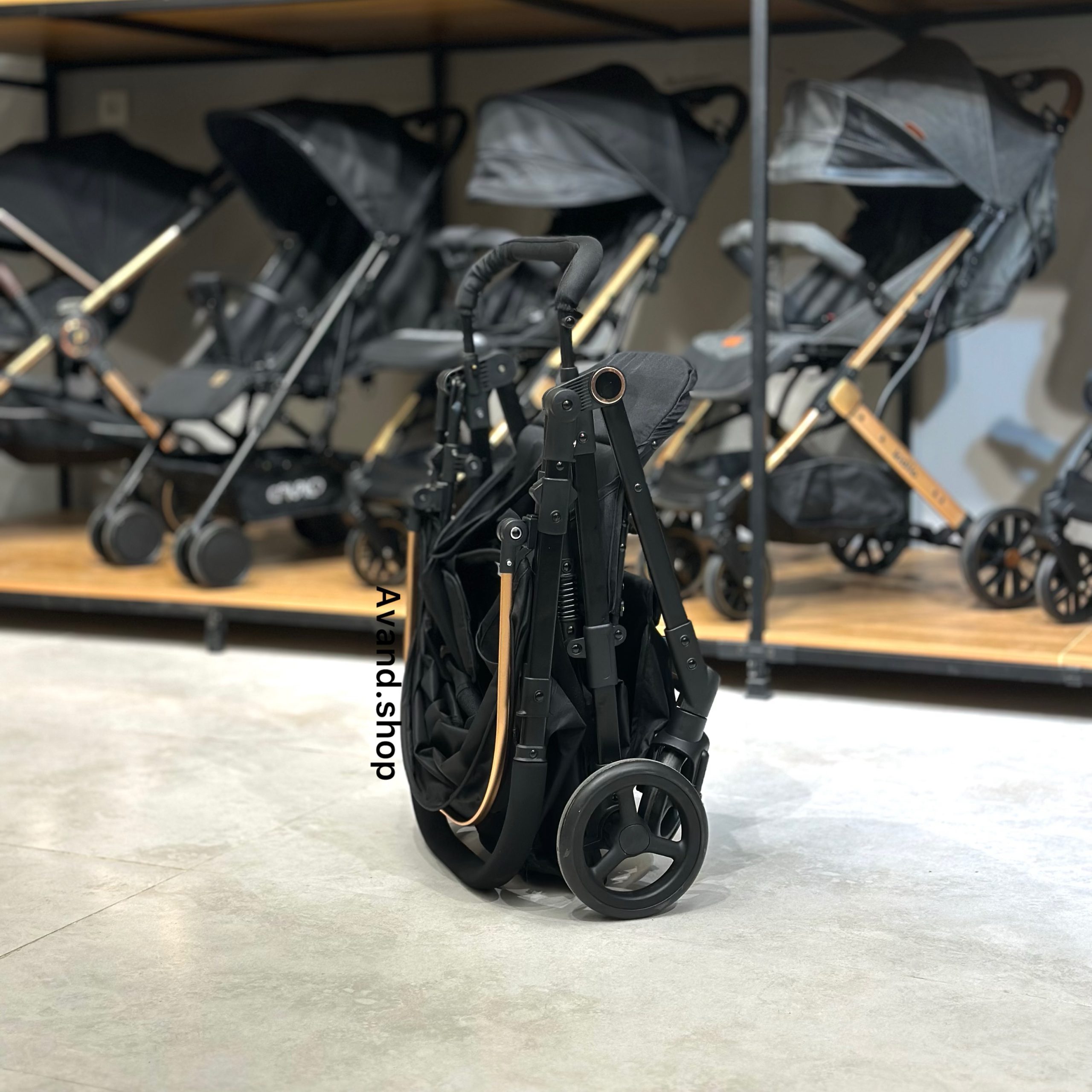 برای جمع کردن کالسکه فقط کافیست که ضامن آن را فشار دهید تا کالسکه به صورت کامل جمع شود.