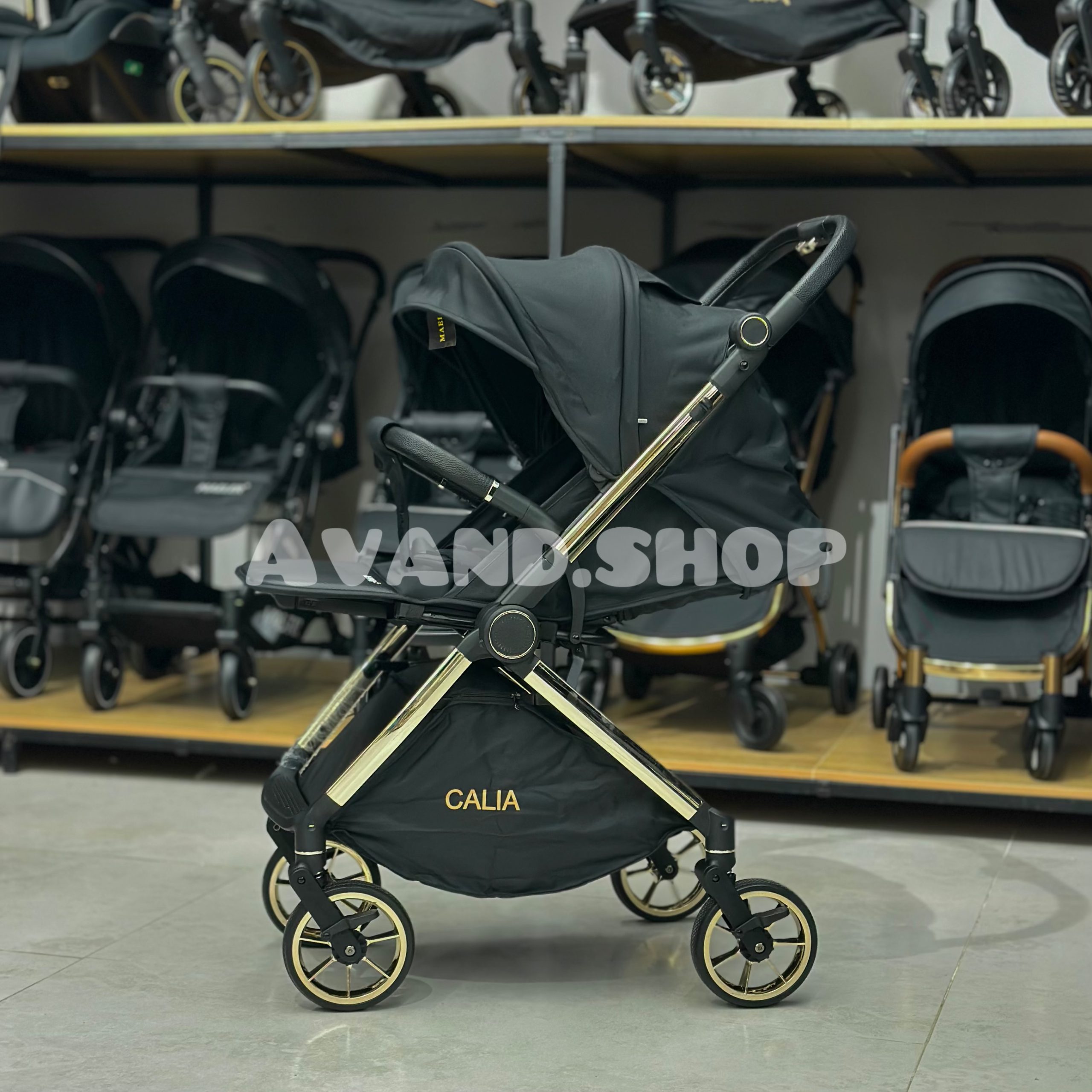 دسته: کالسکه بچه برچسب: کالسکه مایلر مدل کالیا Calia دسته دوطرفه و چهار چرخ 360 درجه